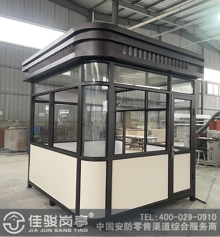 产品特点 1、岗亭材质表面经特殊工艺加工处理,精工制作而成,款型别致,品种繁多,美观大方、稳固耐用,适用于各种通道关卡及停车场。 2、主题骨架采用优质不锈钢整体焊接而成,强度高,抗风压。 3、顶部材料采用特殊防水铰接工艺,彻底解决漏水之患。 4、所有岗亭留有空调及其它电器电源插座,方便使用。 可根据您的特殊要求设计制造出...