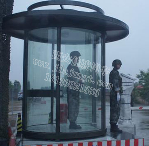 优点: 此类岗亭采用不锈钢及玻璃墙设计,不仅外观大气、时尚、且经久耐用;岗亭的门、窗具有全智能化功能,岗亭前檐可根据天气变化自动伸缩;内部配有空调,更加人性化,让哨兵感觉四季如春。另外,根据需要内部所配置的扩音系统更增强了岗亭的功能性和实用性。